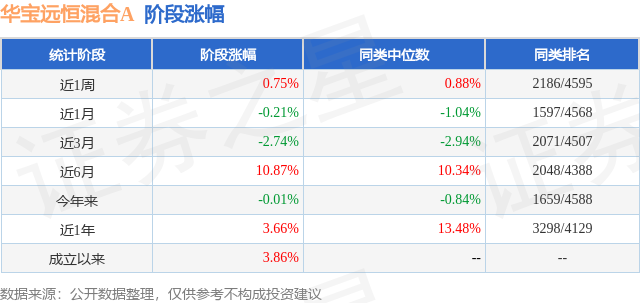 从业绩表现来看,华宝远恒混合A基金过去一年净值涨幅为3.66%,在同类基金中排名3298/4129,同类基金过去一年净值涨幅中位数为13.48%。而基金过去一年的最大回撤为-23.53%,成立以来的最大回撤为-23.53%。