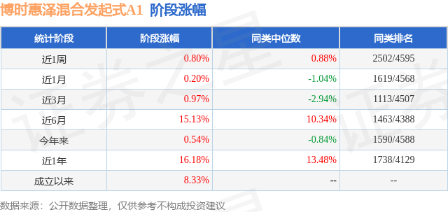 从业绩表现来看,博时惠泽混合发起式A1基金过去一年净值涨幅为16.18%,在同类基金中排名1738/4129,同类基金过去一年净值涨幅中位数为13.48%。而基金过去一年的最大回撤为-10.74%,成立以来的最大回撤为-15.46%。