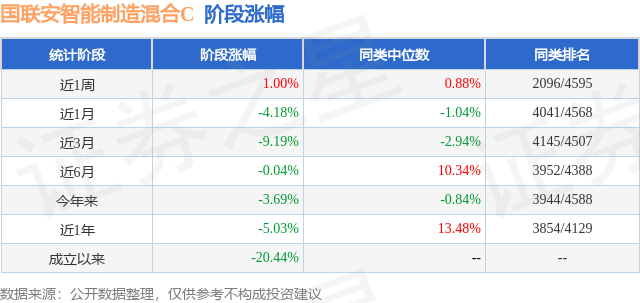 从业绩表现来看,国联安智能制造混合C基金过去一年净值涨幅为-5.03%,在同类基金中排名3854/4129,同类基金过去一年净值涨幅中位数为13.48%。而基金过去一年的最大回撤为-26.14%,成立以来的最大回撤为-30.32%。