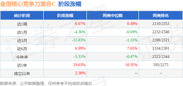 证券之星消息,日前金信核心竞争力混合C基金公布四季报,2024年四季度最新规模0.0亿元,季度净值涨幅为0.59%。