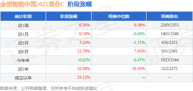 从业绩表现来看,金信智能中国2025混合C基金过去一年净值涨幅为32.04%,在同类基金中排名222/2275,同类基金过去一年净值涨幅中位数为10.35%。而基金过去一年的最大回撤为-9.2%,成立以来的最大回撤为-9.2%。