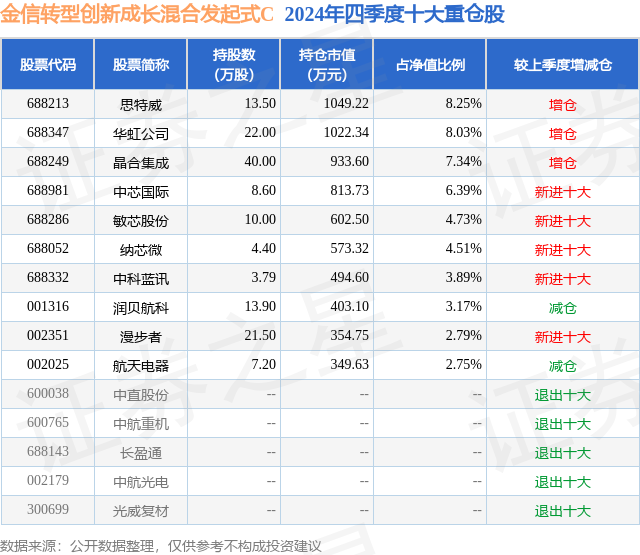 证券之星消息,日前金信转型创新成长混合发起式C基金公布四季报,2024年四季度最新规模0.22亿元,季度净值涨幅为18.45%。