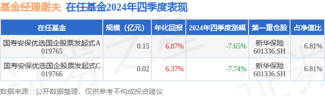 证券之星消息,日前国寿安保优选国企股票发起式A基金公布四季报,2024年四季度最新规模0.15亿元,季度净值涨幅为-7.65%。