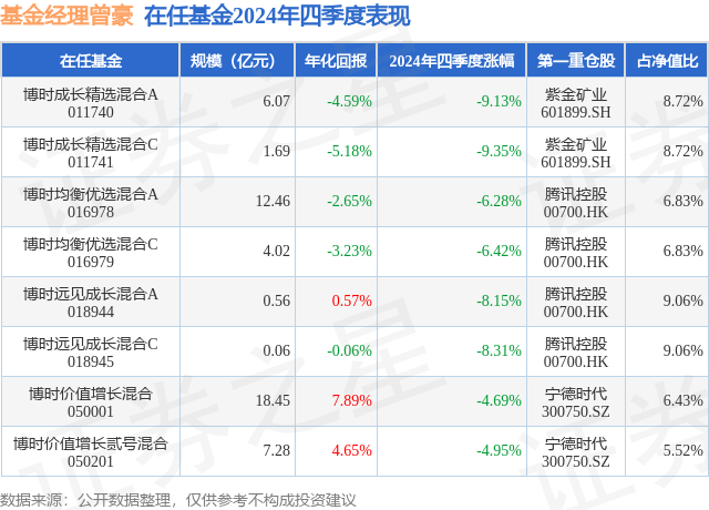 证券之星消息,日前博时远见成长混合C基金公布四季报,2024年四季度最新规模0.06亿元,季度净值涨幅为-8.31%。
