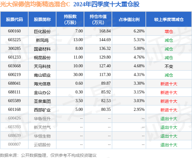 证券之星消息,日前光大保德信均衡精选混合C基金公布四季报,2024年四季度最新规模0.0亿元,季度净值涨幅为-13.85%。
