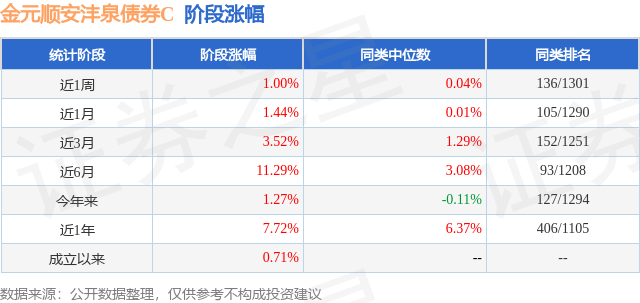 证券之星消息,日前金元顺安沣泉债券C基金公布四季报,2024年四季度最新规模0.63亿元,季度净值涨幅为3.26%。