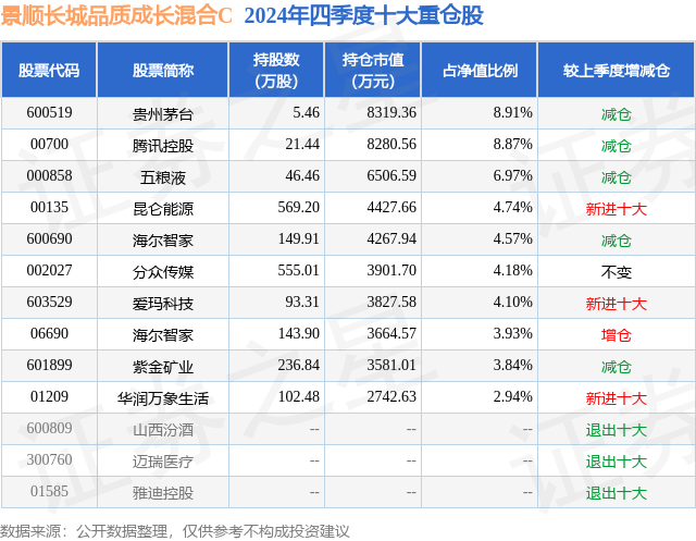 证券之星消息,日前景顺长城品质成长混合C基金公布四季报,2024年四季度最新规模0.29亿元,季度净值涨幅为-7.88%。