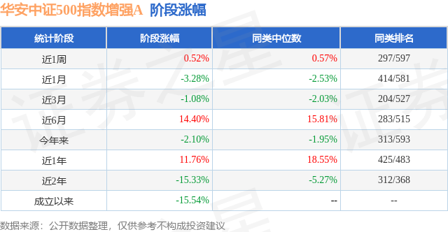 从业绩表现来看,华安中证500指数增强A基金过去一年净值涨幅为11.76%,在同类基金中排名425/483,同类基金过去一年净值涨幅中位数为18.55%。而基金过去一年的最大回撤为-18.87%,成立以来的最大回撤为-33.64%。