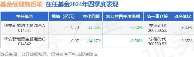 证券之星消息,日前华安新能源主题混合A基金公布四季报,2024年四季度最新规模0.7亿元,季度净值涨幅为-0.42%。