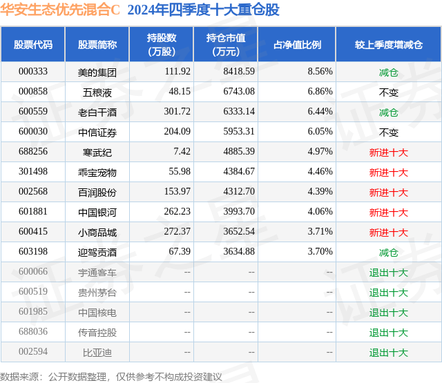 证券之星消息,日前华安生态优先混合C基金公布四季报,2024年四季度最新规模1.02亿元,季度净值涨幅为-7.8%。