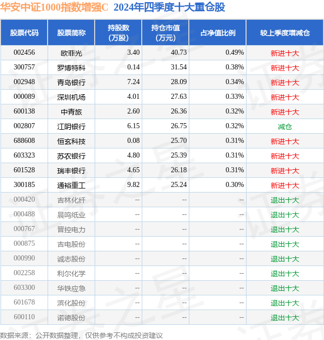证券之星消息,日前华安中证1000指数增强C基金公布四季报,2024年四季度最新规模0.21亿元,季度净值涨幅为3.95%。