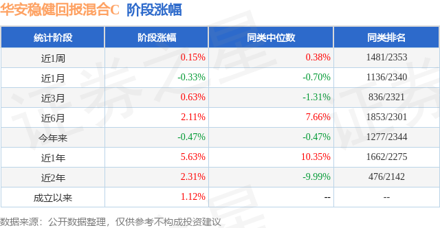 从业绩表现来看,华安稳健回报混合C基金过去一年净值涨幅为5.63%,在同类基金中排名1662/2275,同类基金过去一年净值涨幅中位数为10.35%。而基金过去一年的最大回撤为-1.37%,成立以来的最大回撤为-5.27%。