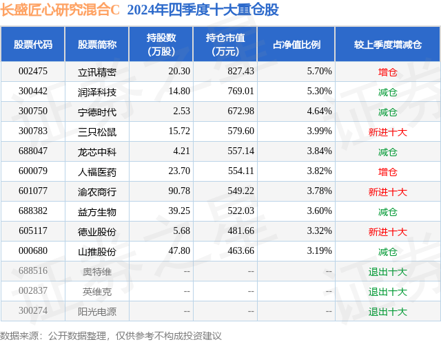 证券之星消息,日前长盛匠心研究混合C基金公布四季报,2024年四季度最新规模0.5亿元,季度净值涨幅为5.9%。