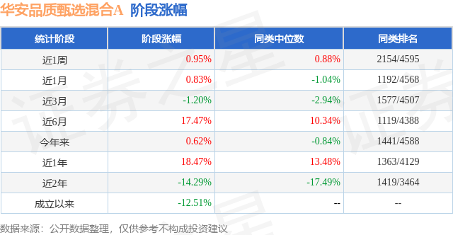 从业绩表现来看,华安品质甄选混合A基金过去一年净值涨幅为18.47%,在同类基金中排名1363/4129,同类基金过去一年净值涨幅中位数为13.48%。而基金过去一年的最大回撤为-16.26%,成立以来的最大回撤为-39.35%。
