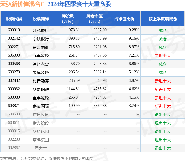 证券之星消息,日前天弘新价值混合C基金公布四季报,2024年四季度最新规模3.92亿元,季度净值涨幅为-4.29%。