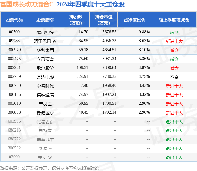 证券之星消息,日前富国成长动力混合C基金公布四季报,2024年四季度最新规模0.43亿元,季度净值涨幅为-2.88%。