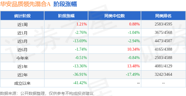 从业绩表现来看,华安品质领先混合A基金过去一年净值涨幅为-13.36%,在同类基金中排名4081/4129,同类基金过去一年净值涨幅中位数为13.48%。而基金过去一年的最大回撤为-26.17%,成立以来的最大回撤为-49.86%。
