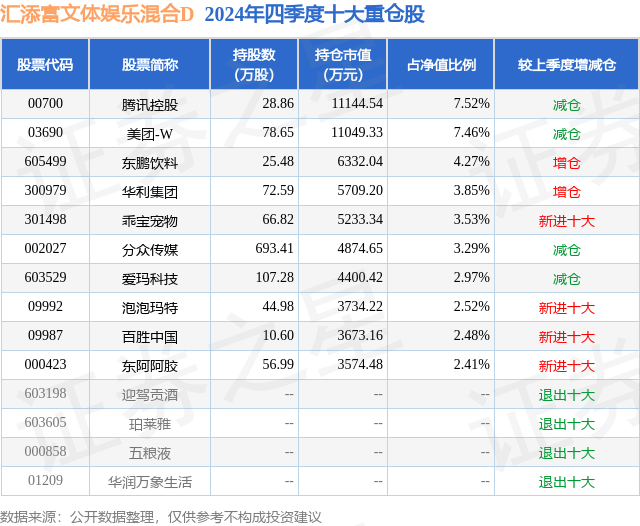 证券之星消息,日前汇添富文体娱乐混合D基金公布四季报,2024年四季度最新规模0.01亿元,季度净值涨幅为-2.51%。