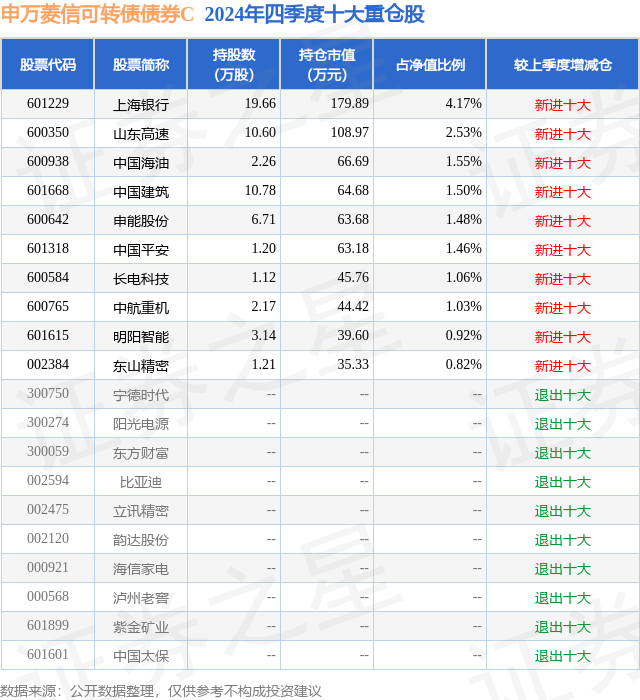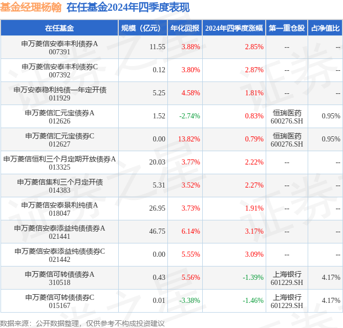 证券之星消息,日前申万菱信可转债债券C基金公布四季报,2024年四季度最新规模0.01亿元,季度净值涨幅为-1.46%。