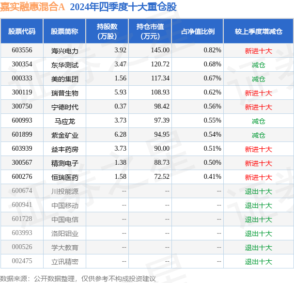 证券之星消息,日前嘉实融惠混合A基金公布四季报,2024年四季度最新规模1.64亿元,季度净值涨幅为0.71%。