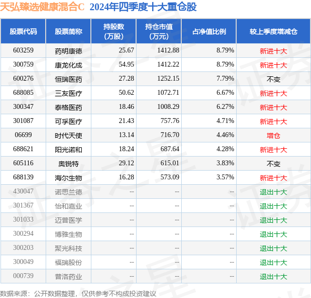 证券之星消息,日前天弘臻选健康混合C基金公布四季报,2024年四季度最新规模0.51亿元,季度净值涨幅为-9.94%。