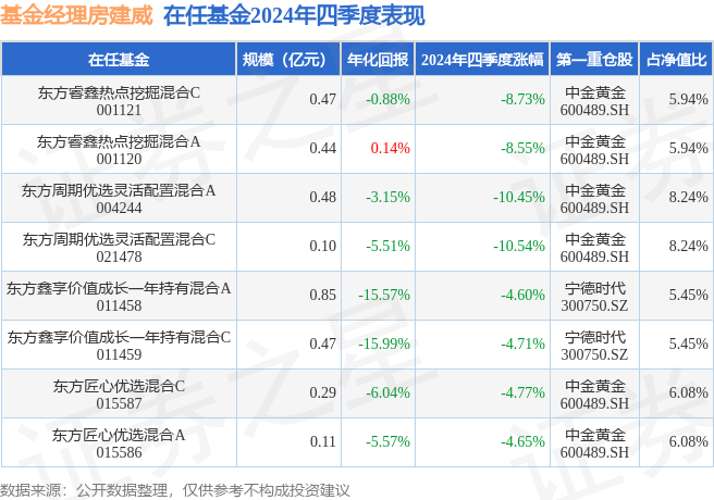 证券之星消息,日前东方匠心优选混合A基金公布四季报,2024年四季度最新规模0.11亿元,季度净值涨幅为-4.65%。