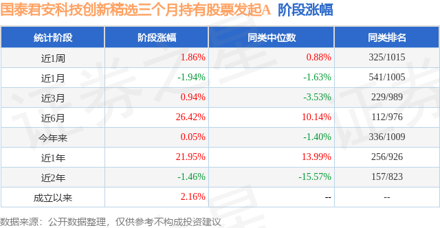 从业绩表现来看,国泰君安科技创新精选三个月持有股票发起A基金过去一年净值涨幅为21.95%,在同类基金中排名256/926,同类基金过去一年净值涨幅中位数为13.99%。而基金过去一年的最大回撤为-20.92%,成立以来的最大回撤为-35.4%。