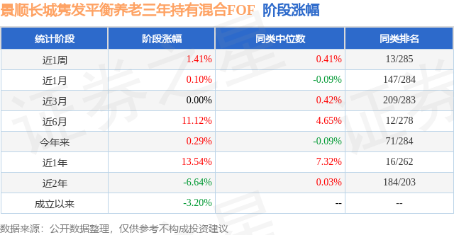 从业绩表现来看,景顺长城隽发平衡养老三年持有混合FOF基金过去一年净值涨幅为13.54%,在同类基金中排名16/262,同类基金过去一年净值涨幅中位数为7.32%。而基金过去一年的最大回撤为-8.7%,成立以来的最大回撤为-22.42%。