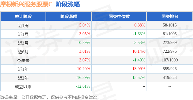 从业绩表现来看,摩根新兴服务股票C基金过去一年净值涨幅为10.2%,在同类基金中排名559/926,同类基金过去一年净值涨幅中位数为13.99%。而基金过去一年的最大回撤为-18.91%,成立以来的最大回撤为-41.03%。