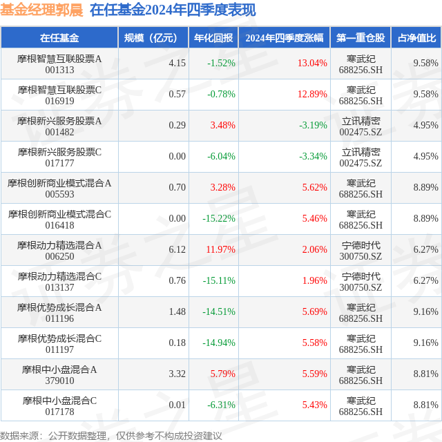 证券之星消息,日前摩根新兴服务股票C基金公布四季报,2024年四季度最新规模0.0亿元,季度净值涨幅为-3.34%。
