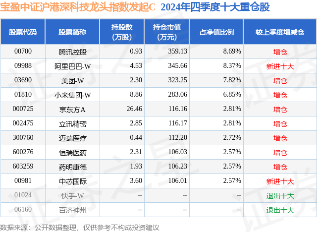 证券之星消息,日前宝盈中证沪港深科技龙头指数发起C基金公布四季报,2024年四季度最新规模0.07亿元,季度净值涨幅为1.86%。