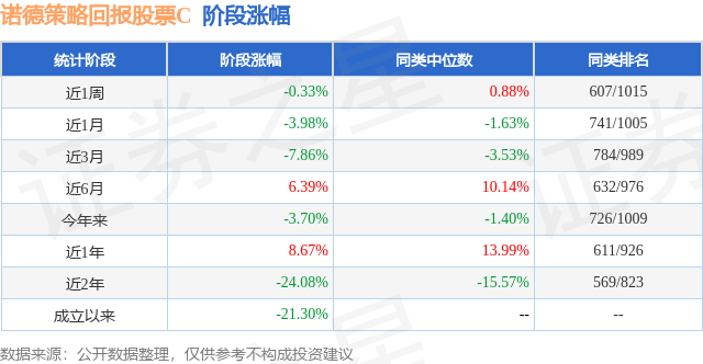 从业绩表现来看,诺德策略回报股票C基金过去一年净值涨幅为8.67%,在同类基金中排名611/926,同类基金过去一年净值涨幅中位数为13.99%。而基金过去一年的最大回撤为-18.48%,成立以来的最大回撤为-35.36%。