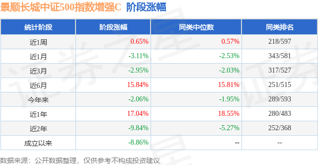 从业绩表现来看,景顺长城中证500指数增强C基金过去一年净值涨幅为17.04%,在同类基金中排名280/483,同类基金过去一年净值涨幅中位数为18.55%。而基金过去一年的最大回撤为-17.27%,成立以来的最大回撤为-31.27%。