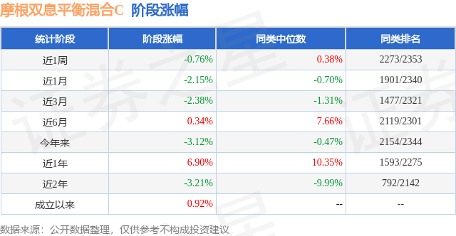 从业绩表现来看,摩根双息平衡混合C基金过去一年净值涨幅为6.9%,在同类基金中排名1593/2275,同类基金过去一年净值涨幅中位数为10.35%。而基金过去一年的最大回撤为-13.36%,成立以来的最大回撤为-13.36%。