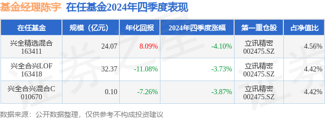 证券之星消息,日前兴全合兴混合C基金公布四季报,2024年四季度最新规模0.1亿元,季度净值涨幅为-3.87%。