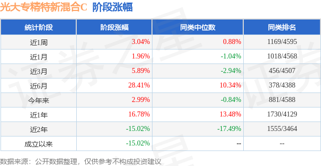 从业绩表现来看,光大专精特新混合C基金过去一年净值涨幅为16.78%,在同类基金中排名1730/4129,同类基金过去一年净值涨幅中位数为13.48%。而基金过去一年的最大回撤为-22.67%,成立以来的最大回撤为-38.77%。