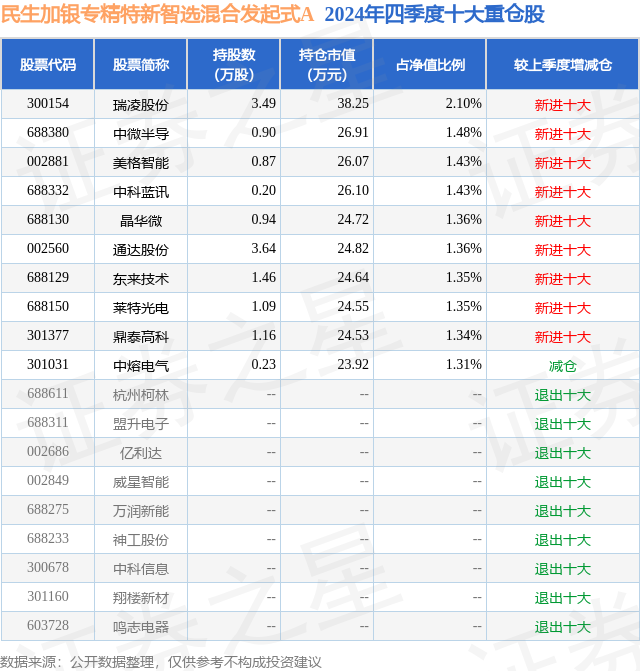 证券之星消息,日前民生加银专精特新智选混合发起式A基金公布四季报,2024年四季度最新规模0.1亿元,季度净值涨幅为5.13%。