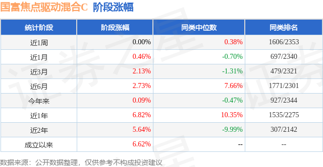 从业绩表现来看,国富焦点驱动混合C基金过去一年净值涨幅为6.82%,在同类基金中排名1535/2275,同类基金过去一年净值涨幅中位数为10.35%。而基金过去一年的最大回撤为-1.42%,成立以来的最大回撤为-2.06%。