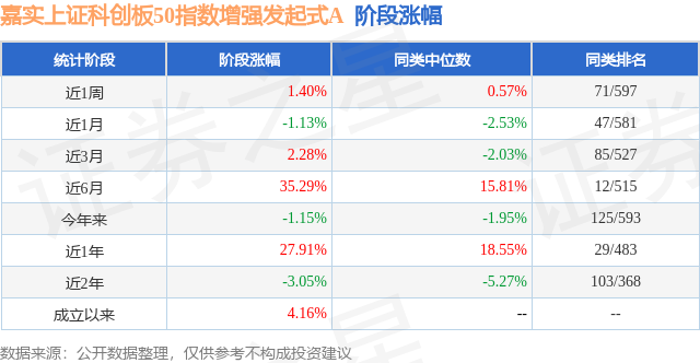 从业绩表现来看,嘉实上证科创板50指数增强发起式A基金过去一年净值涨幅为27.91%,在同类基金中排名29/483,同类基金过去一年净值涨幅中位数为18.55%。而基金过去一年的最大回撤为-21.26%,成立以来的最大回撤为-40.84%。
