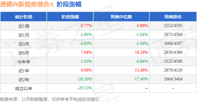 从业绩表现来看,诺德兴新趋势混合A基金过去一年净值涨幅为8.08%,在同类基金中排名2879/4129,同类基金过去一年净值涨幅中位数为13.48%。而基金过去一年的最大回撤为-23.88%,成立以来的最大回撤为-33.44%。