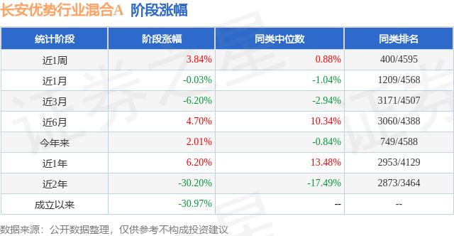 从业绩表现来看,长安优势行业混合A基金过去一年净值涨幅为6.2%,在同类基金中排名2953/4129,同类基金过去一年净值涨幅中位数为13.48%。而基金过去一年的最大回撤为-18.94%,成立以来的最大回撤为-39.3%。
