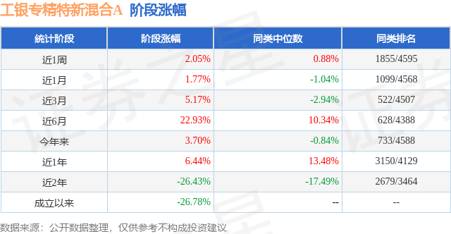 从业绩表现来看,工银专精特新混合A基金过去一年净值涨幅为6.44%,在同类基金中排名3150/4129,同类基金过去一年净值涨幅中位数为13.48%。而基金过去一年的最大回撤为-27.86%,成立以来的最大回撤为-47.83%。