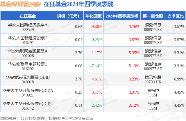 证券之星消息,日前华安物联网主题股票C基金公布四季报,2024年四季度最新规模0.08亿元,季度净值涨幅为5.13%。