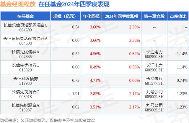 证券之星消息,日前长信先优债券C基金公布四季报,2024年四季度最新规模0.0亿元,季度净值涨幅为0.58%。