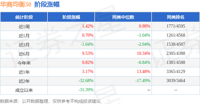 从业绩表现来看,华商均衡30基金过去一年净值涨幅为3.17%,在同类基金中排名3365/4129,同类基金过去一年净值涨幅中位数为13.48%。而基金过去一年的最大回撤为-25.25%,成立以来的最大回撤为-43.71%。