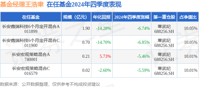 证券之星消息,日前长安宏观策略混合C基金公布四季报,2024年四季度最新规模0.02亿元,季度净值涨幅为-5.59%。