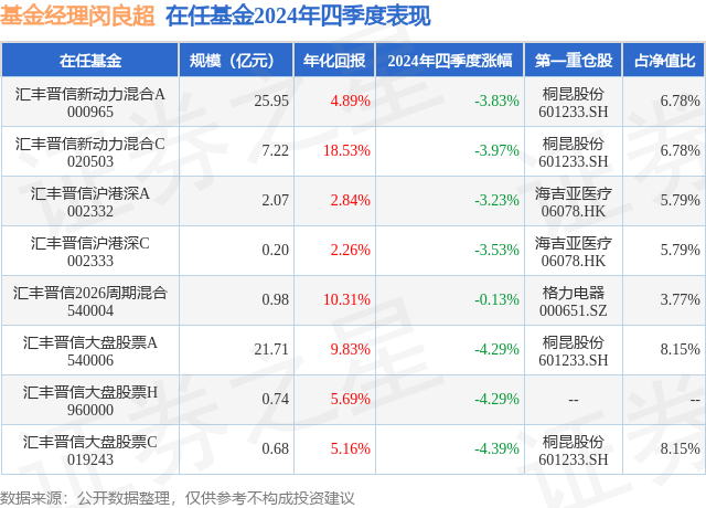 证券之星消息,日前汇丰晋信沪港深A基金公布四季报,2024年四季度最新规模2.07亿元,季度净值涨幅为-3.23%。