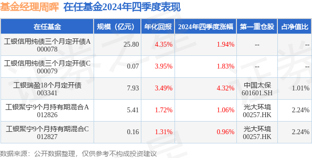 证券之星消息,日前工银瑞盈18个月定开债基金公布四季报,2024年四季度最新规模7.93亿元,季度净值涨幅为4.32%。