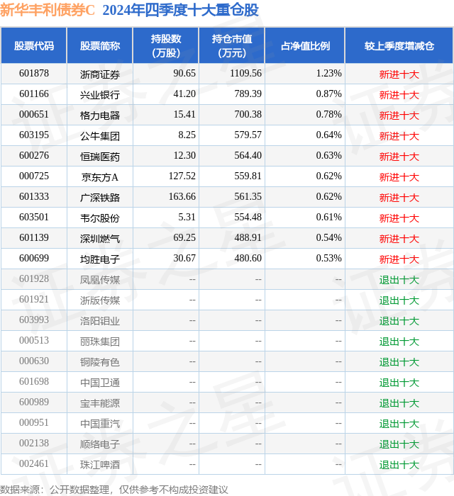 证券之星消息,日前新华丰利债券C基金公布四季报,2024年四季度最新规模0.12亿元,季度净值涨幅为0.36%。