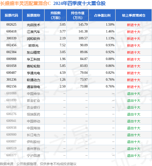 对本季度基金运作,基金经理的观点如下:1、报告期内行情回顾报告期内,在一系列稳增长政策发布以来,宏观经济基本面在四季度出现小幅改善,预计全年GDP增速5.0%目标达成。12月边际上看,基本面数量指标相较11月大概持平,价格信号延续走弱,基建投资维持一定强度,生产大致呈现季节性回落,内需中消费动能有所放缓,价格中食品价格超季节性下跌,工业品价格延续下行,在基数效应下PPI同比跌幅收敛。报告期内,在政策利好转向预期下,10月A股市场大幅高开,增量资金持续流入,成交量急剧放大。之后推动风险偏好不断提升的催化有所放缓,投资者更关注政策实际落地情况,市场整体维持高位震荡,其中微盘股、中证2000等小盘股表现较出较高弹性。临近年底,受美国特朗普获选上任预期影响,叠加美债利率、美元指数走强、美联储货币政策预期收紧,而国内降息降准预期升温,导致人民币汇率走贬,压制了人民币计价资产表现,市场整体热度有所下降,风格摇摆分化,缺乏足够的热点支撑,预期博弈更加复杂,市场波动加大,部分防御资金转向红利资产。报告期内,国内债券市场在经济基本面、资金面等支持下沿续牛市行情,受外部及事件扰动造成的波动反而成为市场调整买入的机会,现券的配置力量依旧稳固,长期限利率债走势偏强。需要关注到,目前货币宽松政策预期的交易已经比较充分,未来若有降准降息政策落地,或可能引发止盈,带来债市调整。报告期内,在IPO强监管的背景下,新股发行维持相对较低的常态化节奏。受供需影响,叠加注册制新股发行定价估值中枢相对克制、及权益市场向好预期,新股上市涨幅短期内表现较强。2、报告期内本基金投资策略分析根据本基金产品合同,本基金为灵活配置混合基金,股票投资仓位0~95%,基金合同对组合投资策略和股票持仓风格上没有严格限定。结合目前市场背景、相关指数优势、组合策略模拟回溯测算等,本报告期内,本基金投资策略进行了较大的调整,调整为长盛"双基指基"(百优266组合)指数策略:"中证A500指数-沪深300指数"类指数化操作策略。即中证A500指数、非沪深300指数成份股持仓构建指数化策略组合,持仓比例对标中证A500指数中的相对权重,并进行归一化处理,持仓成份股跟随指数半年调整的节奏,组合整体股票持仓维持90~95%。2024年9月23日发布的中证A500指数有非常明显编制优势:行业覆盖更全更新更均衡、精选各行业龙头、互联互能、纳入ESG因子评价等。该指数可以较好表征反映市场,更加贴近投资,更能反映新质生产力标的特征,比价值更成长、比成长更价值。因此,2024年9月23日以来,中证A500指数ETF规模从最初的200亿,迅速上升到目前超过2500亿,资金整体流入非常明显,目前中证A500ETF整体单日成交金额已超过300亿,大幅超越之前领先的沪深300ETF成交金额,具有非常好的流动性特征。鉴此,综合中证A500指数、沪深300指数编制的两类审美标尺并相互校验,将两个指数"叠加重叠"(中证A500+沪深300,同时是中证A500、沪深300的成份股)、"剔除优化"(中证A500-沪深300,是中证A500、但非沪深300的成份股),构造"百佳"、"百优"双基指基指数策略组合,同时保留成份股在中证A500指数编制中相对权重位置,以反映其编制先进性中对于行业个股相对均衡性和优度的考量。长盛"双基指基"(百佳234组合)指数策略:中证A500+沪深300长盛"双基指基"(百优266组合)指数策略:中证A500-沪深3002024.9.23,"中证A500+沪深300"成份股234只,权重占比占中证A500的80.30%、占沪深300的87.61%,"中证A500-沪深300"成份股266只,权重占比占中证A500的19.71%;2024.12.31,"中证A500+沪深300"成份股236只,权重占比占中证A500的80.08%、占沪深300的87.81%,"中证A500-沪深300"成份股264只,权重占比占中证A500的19.92%;即"中证A500+沪深300"、"中证A500-沪深300"在中证A500的权重占比分别约为80%、20%,大致稳定,也反映出中证A500指数编制的行业覆盖均衡特征。"双基指基"组合策略的数学表达式:组合收益构成Ra500=0.8×Ra234+0.2×Ra266组合超额收益分配关系0=0.8×(Ra234-Ra500)+0.2×(Ra266-Ra500)组合超额收益"上行"转换(Ra266-Ra500)=-4×(Ra234-Ra500)组合超额收益"下行"转换(Ra234-Ra500)=-(Ra266-Ra500)/4从数学恒等式看,"双基指基"百佳百优组合指数策略具有稳定、强烈的超额收益非对称性。根据组合收益构成数学恒等式,"百佳策略组合"与"百优策略组合"相对A500超额收益存在倍增的负相关关系。若"百佳策略组合"提供1倍负超额收益,则"百优策略组合"存在4倍相对正超额收益;若"百优策略组合"提供1倍负超额收益,则"百佳策略组合"存在1/4倍相对正超额收益。策略核心优势一:同源共生,和而不同。双基指基组合基于A500指数构建,市场贝塔属性清晰,策略透明,客观被动,无黑匣子主动调整,相对A500指数超额收益弹性较大。双基指基组合基于中证A500、沪深300指数构建,由于指数编制科学客观,两个子指数组合保留母指数编制精华,能够通过清晰透明的仓位调整,实现自我升维。且超额收益有固定倍数,具有强于市场的beta属性,有利于投资者作为工具指数产品进行投资。策略核心优势二:非此即彼,青出于蓝。双基指基组合强弱轮动有持续性,通过自我升维实现投资逻辑闭环,明显提升投资胜率和赔率的概率优势,有利于实现大幅超过指数的超额收益连续复利增长。基于数学恒等式,市场任何一个时间点,双基指基组合必有一个正超额收益,一个负超额收益,历